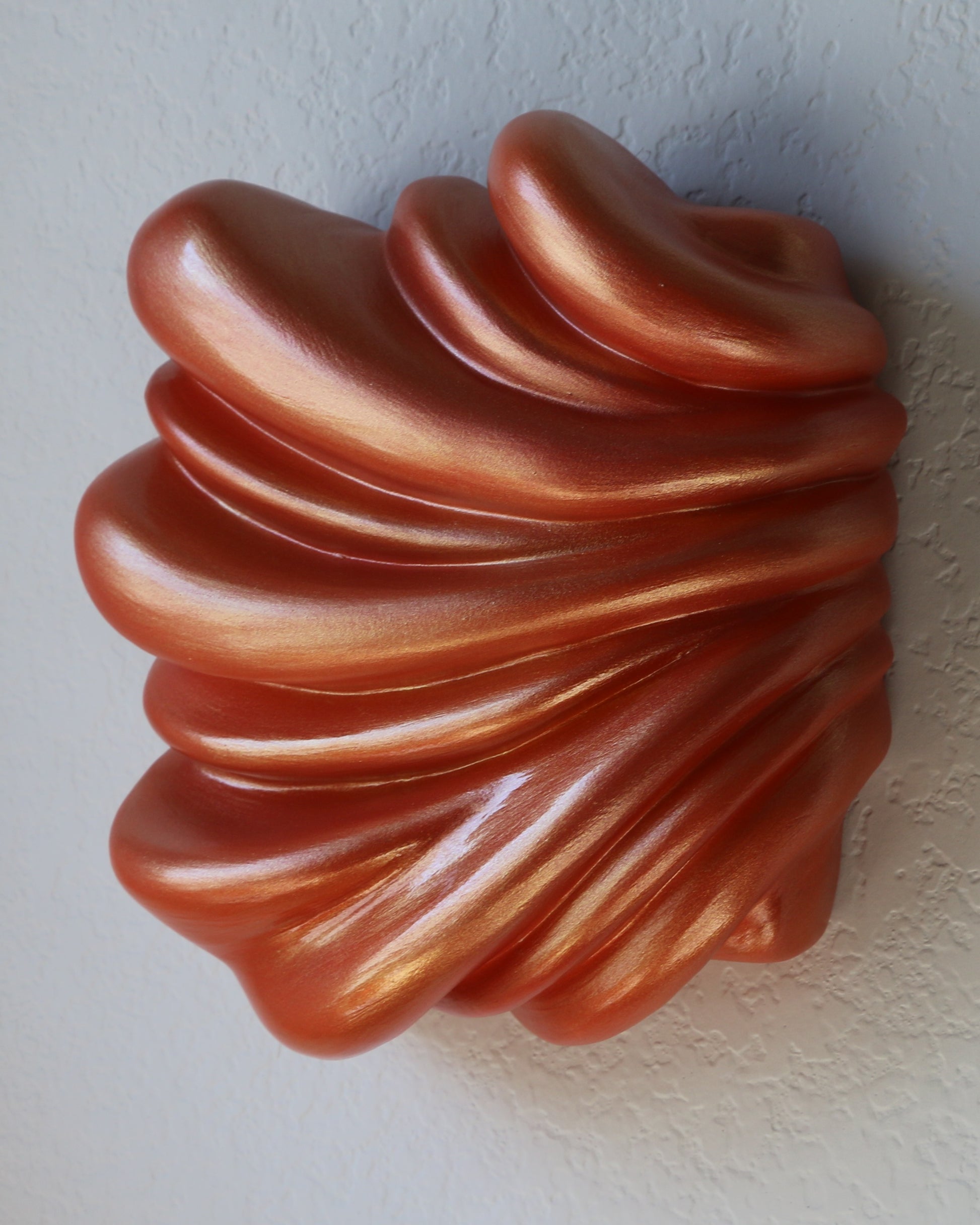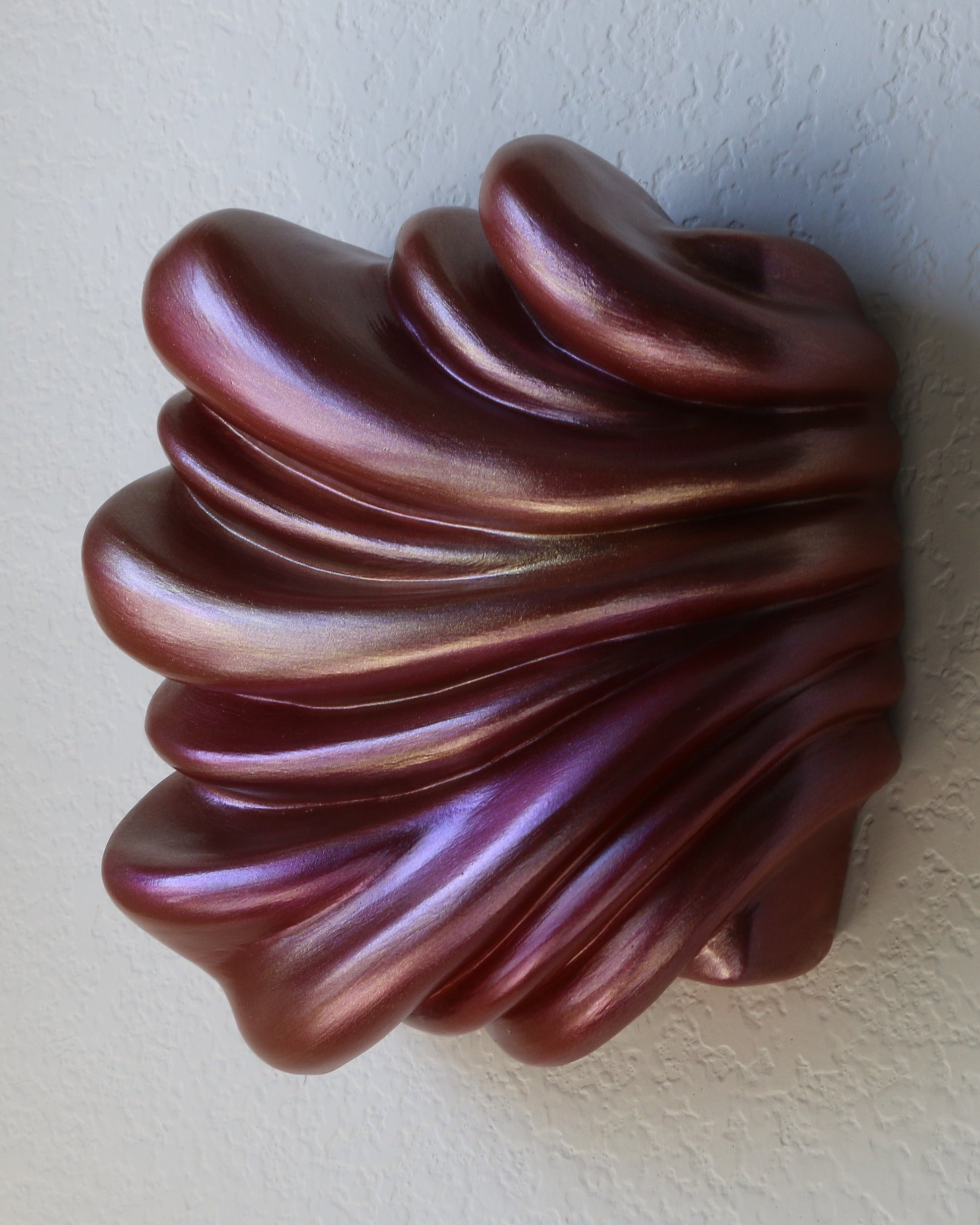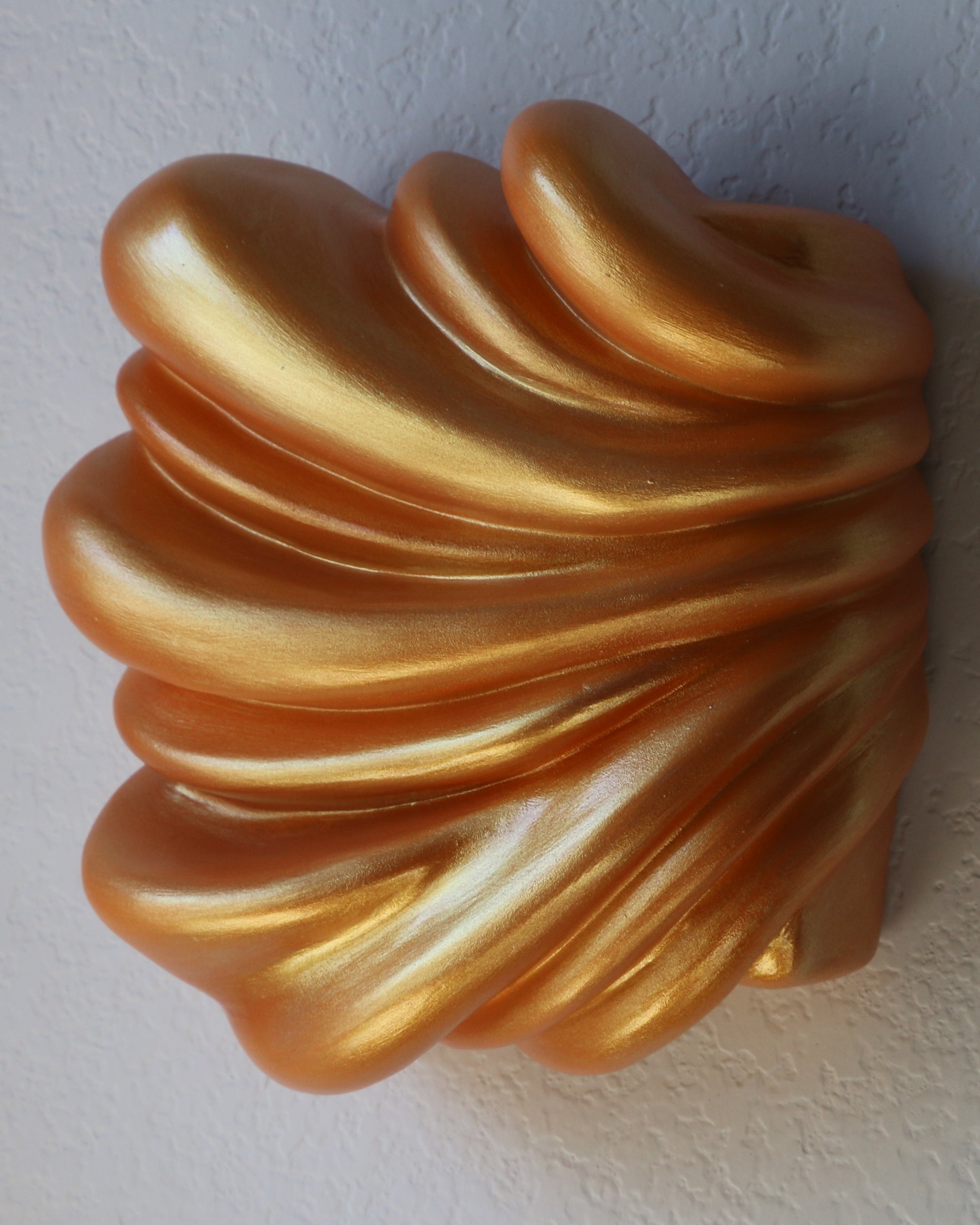 Medium and Size: Drywall mud, plaster, mounted on a wood panel, and sealed with glossy finish. 8.5 x 8.5 x 3.5 inches | 3–4 lbs.