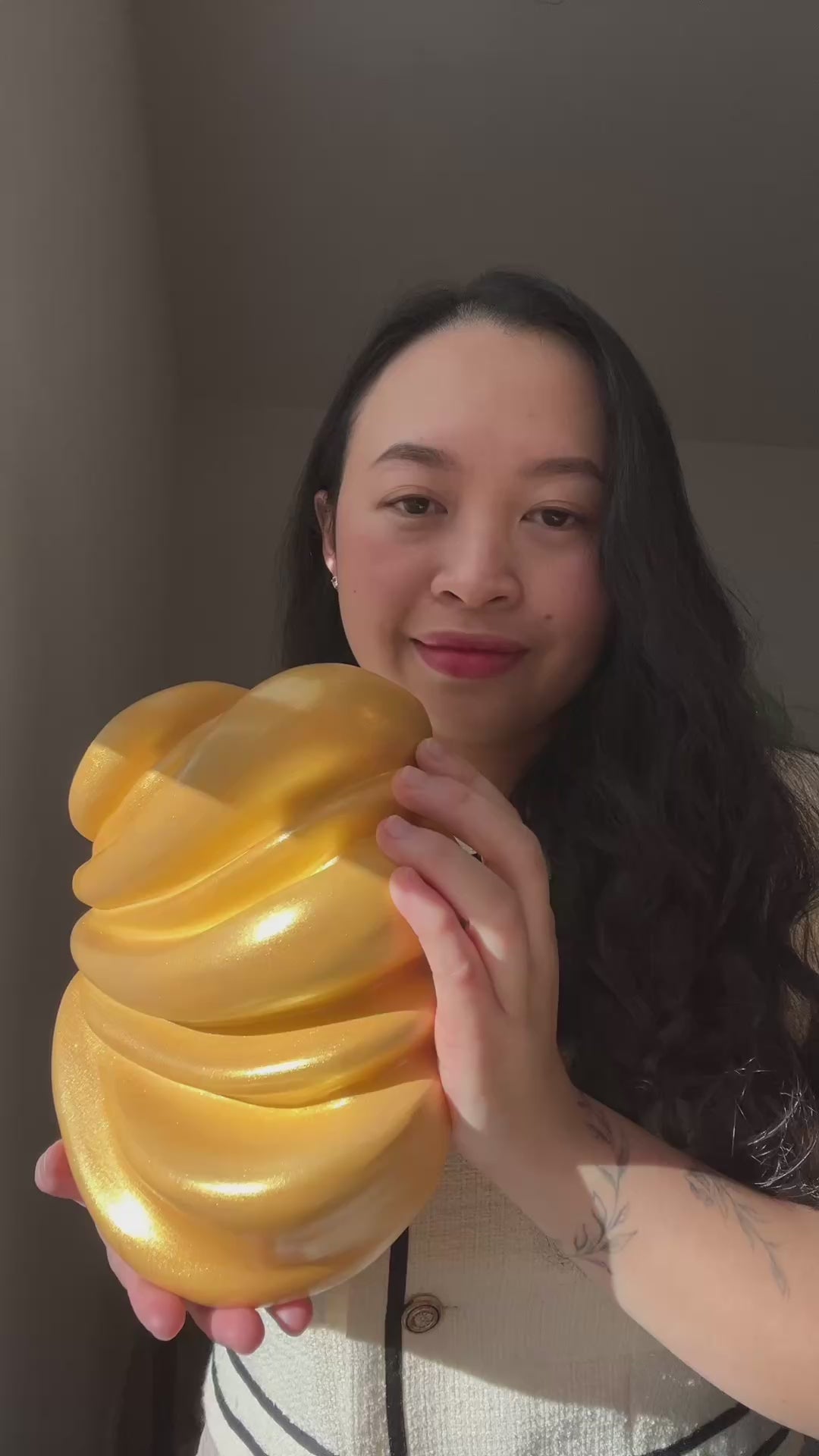 "Golden Hour Whisper" - Like the last rays of autumn sun filtering through changing leaves, this piece captures that magical moment when day surrenders to dusk. Each ridged layer tells the story of time's patient work; how beauty emerges not in a rush, but in the slow, deliberate dance of becoming. This sculpture holds the energy of harvest moons and golden afternoons, a reminder that even as we move toward darker days, we carry light within us.